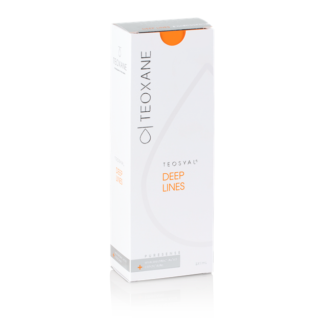 Teosyal® PureSense Deep Lines is used for in-depth filling of highly pronounced wrinkles. Teosyal® PureSense Deep Lines has an optimal viscoelastic profile, adapted for treating deep wrinkles such as severe nasolabial folds and marionette lines. The product contains lidocaine, a powerful anaesthetic, for a more comfortable injection.