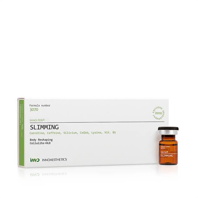 Innoaesthetics® Slimming is a lipolytic solution that dramatically reduces the appearance of cellulite and smooths the skin. It contains a unique combination of lipo-active ingredients such as Carnitine, Caffeine, Silicium, CoQ10, Lysine, and Vitamin B5 that helps to visibly and quickly improve the body contour in cases of HLD (Hydrolipodystrophy) by shrinking fat deposits and smooth the skin texture. When injecting Innoaesthetics® Slimming with a mesotherapy technique, the lipolysis is stimulated and the fat acids will be broken down and used as energy leaving the skin tight and even. Furthermore, Innoaesthetics® Slimming assists in regulating the dermal connective tissue and the extracellular matrix.